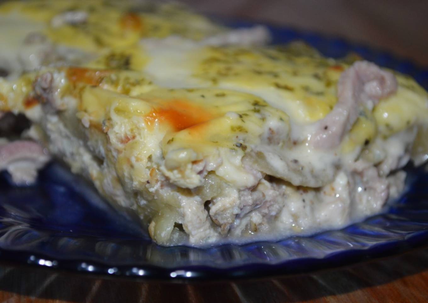 - Ahora colocamos el jamón en tiras haciendo otra capa, y volvemos a cubrir con otra capa de berenjena,