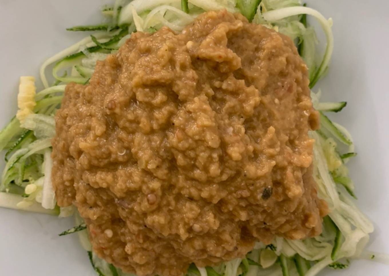 Fideos de zucchini con salsa de berenjena