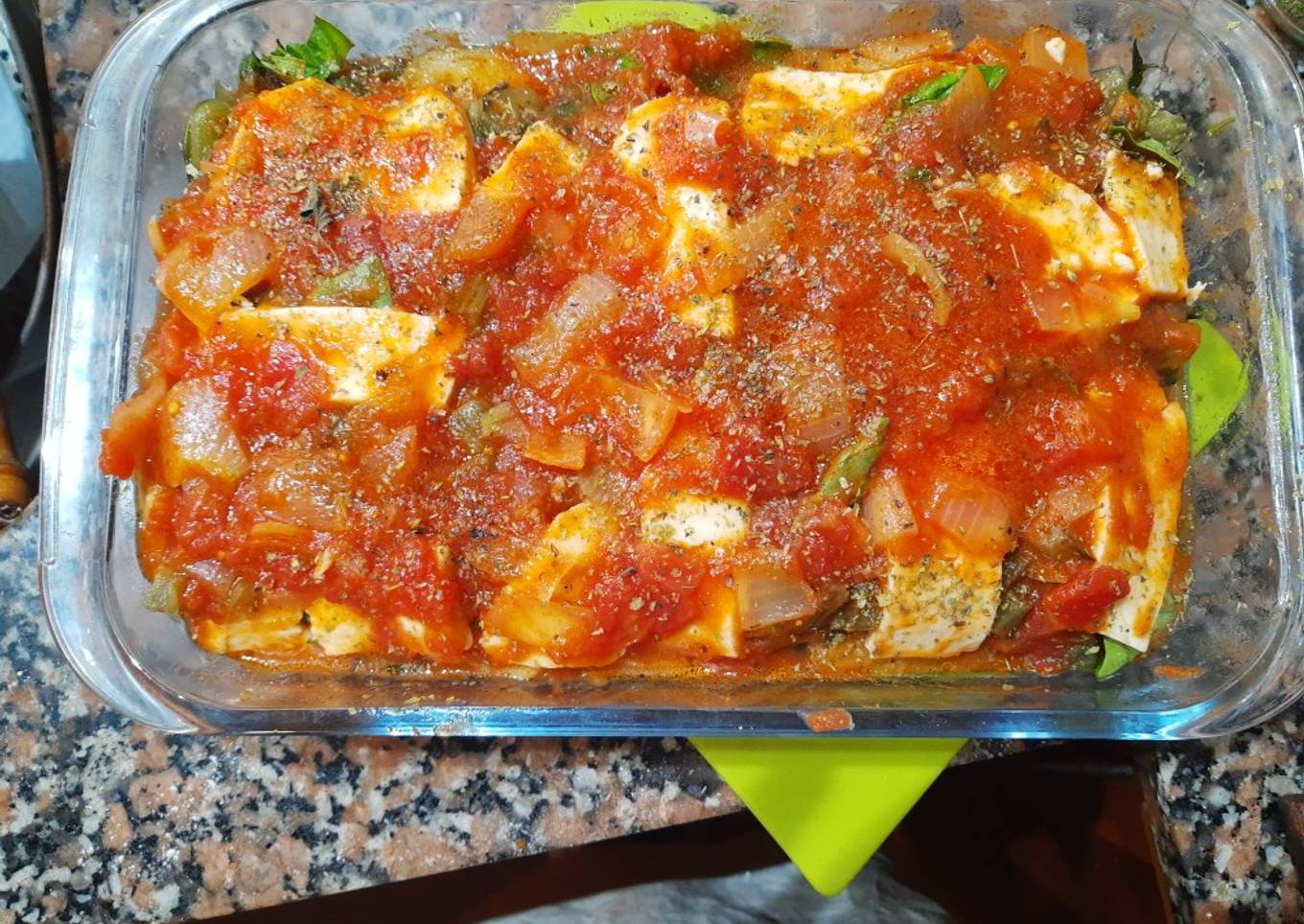 - Prepare una salsa con una cebolla, una lata de tomates, hojas de albahaca. Las berenjenas las cort茅 en fetas y las puse con sal gruesa una hora, a que suelten el agua. Aqu铆 tambi茅n adjunte la foto de las pencas picadas.