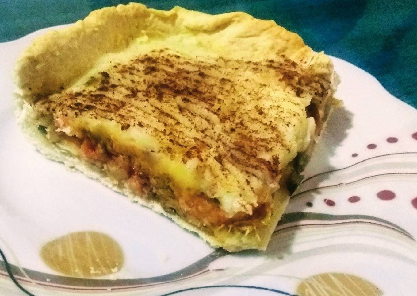 - PREPARACIÓN: Encima de la masa, colocar una capa fina de puré, una capa de relleno, tomates cortados en rodajas espolvoreados con orégano, otra capa de puré, espolvorear con canela molida y llevar a horno medio unos 20 minutos y a disfrutar!!