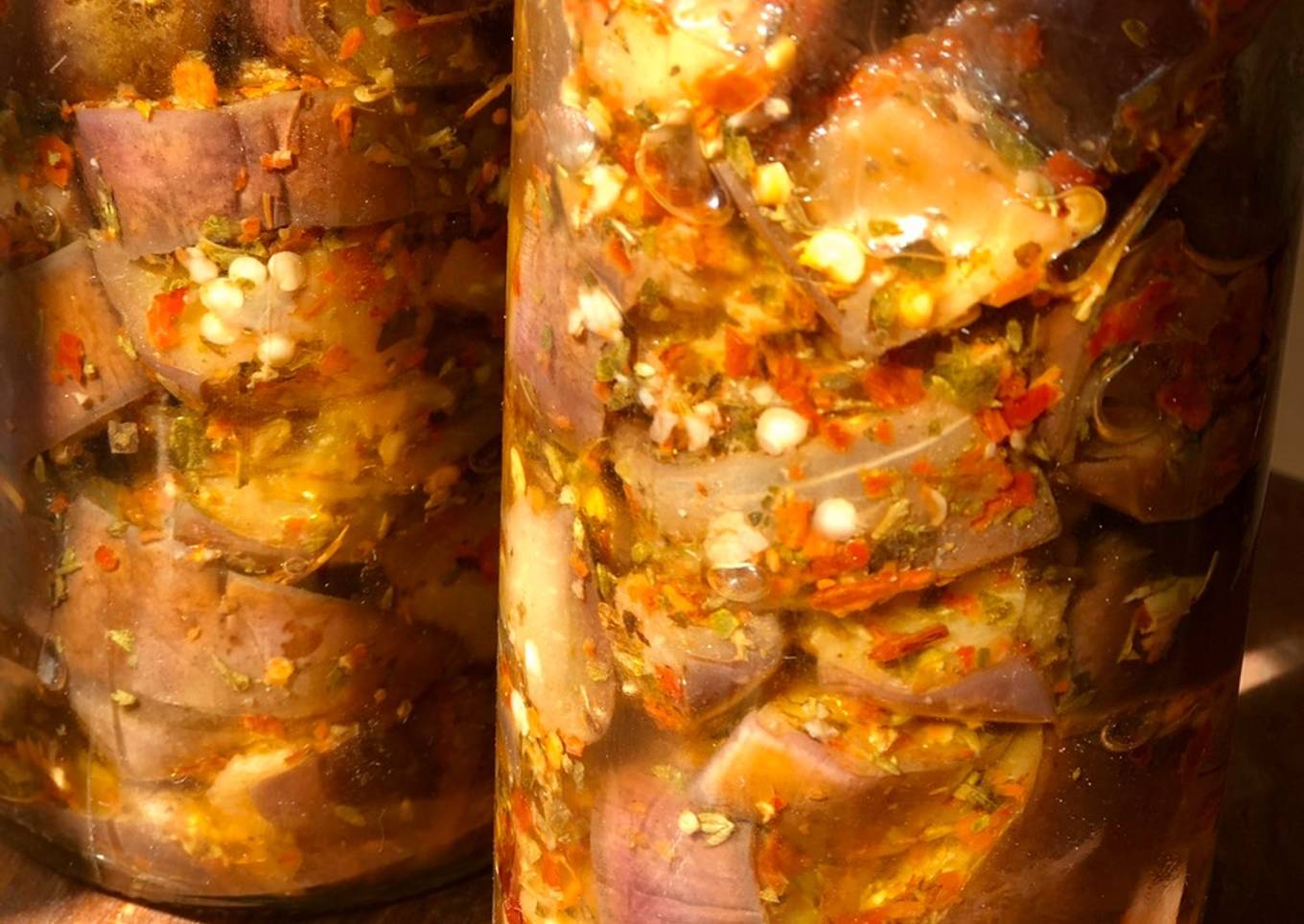 - Después del reposo llenamos los frascos a tope y cubrimos con lo que queda de aceite, no mucho sino que queden cubiertas y tapamos.
