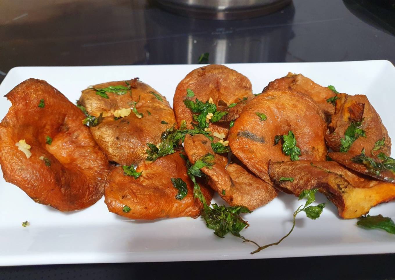 Son una de mis setas preferidas y las suelo hacer a la plancha cuando están de temporada, pero ayer decidí probar con la freidora de aire, que hace tiempo que no la uso. Cuando limpio los rovellones siempre pienso en @tesa_cuina porque me enseñó un truco buenísimo. Y como sé que hace poco también compró la freidora, pues ayer con más razón todavía me acordé de ella!! Muy ricas y lo interesante es que el perejil se hizo crujiente (lo cual me ha dado una idea para hacer espinacas a ver si salen igual - ya os contaré 😉)