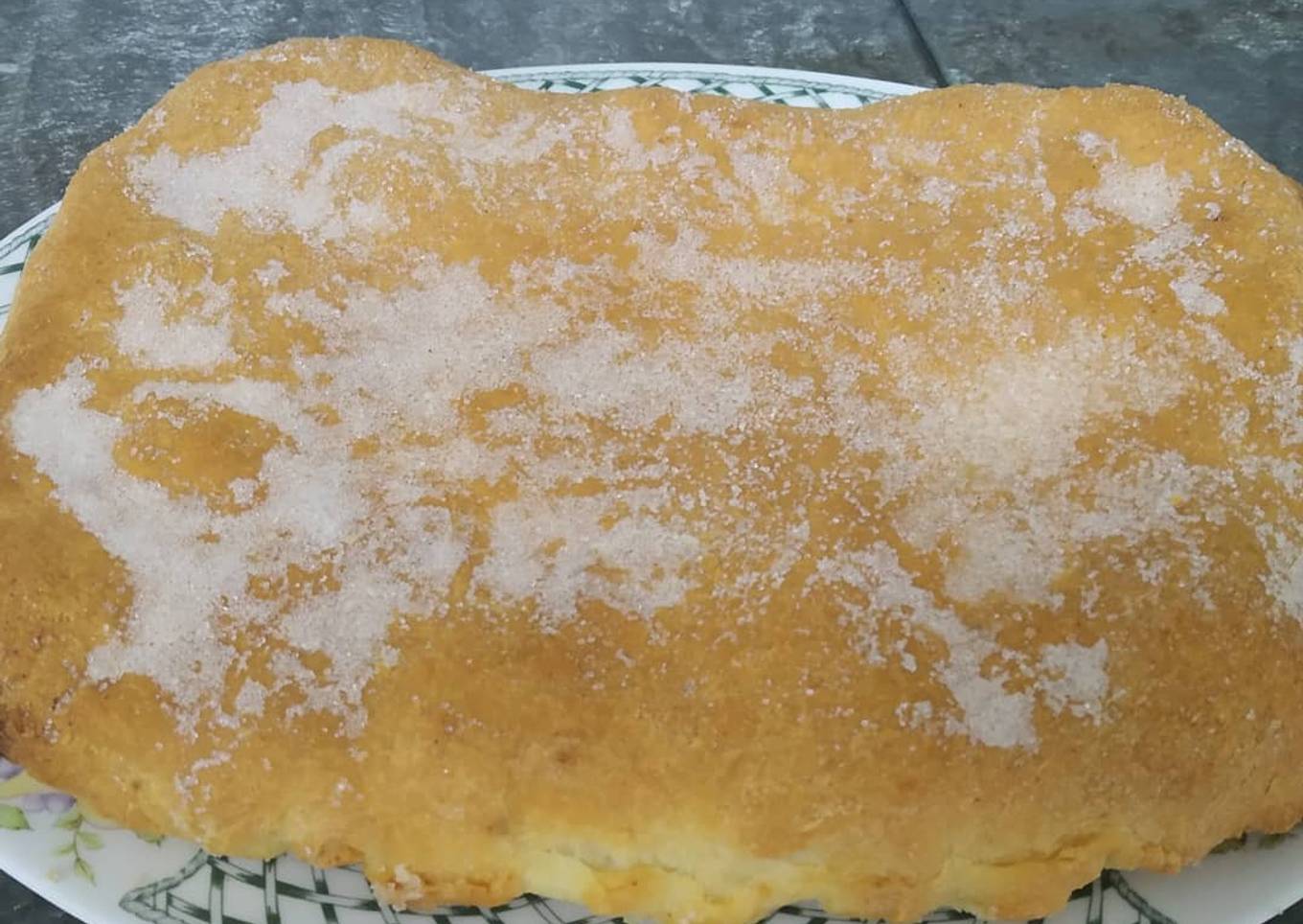 - Tapamos con otro trozo de masa que tengamos estirado y echamos azúcar y aceite por encima