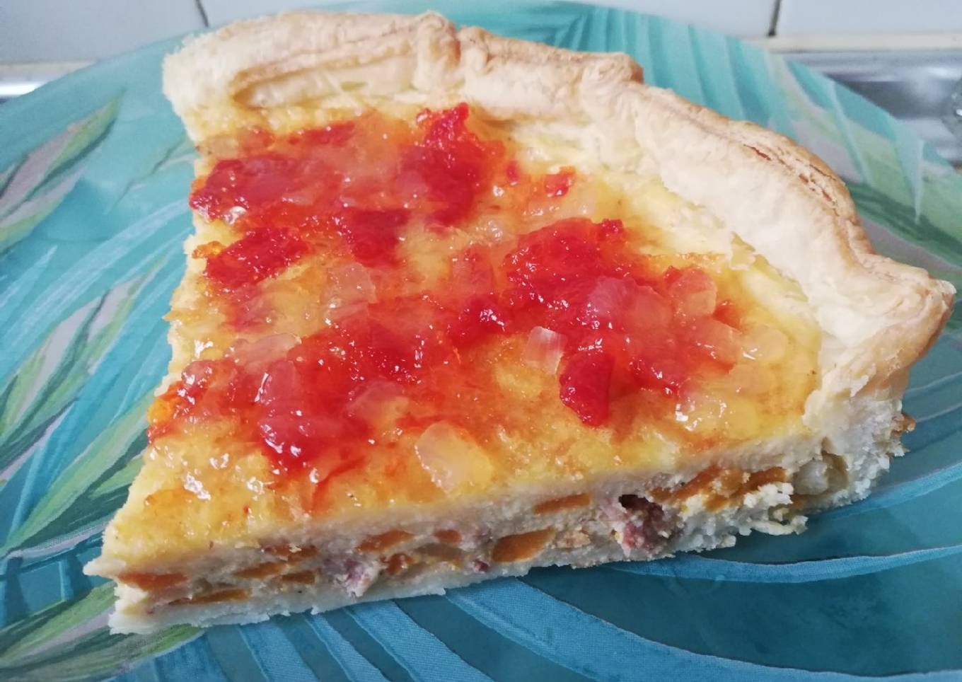 Quiche de calabaza, nabos y bacon con confitura de piquillos