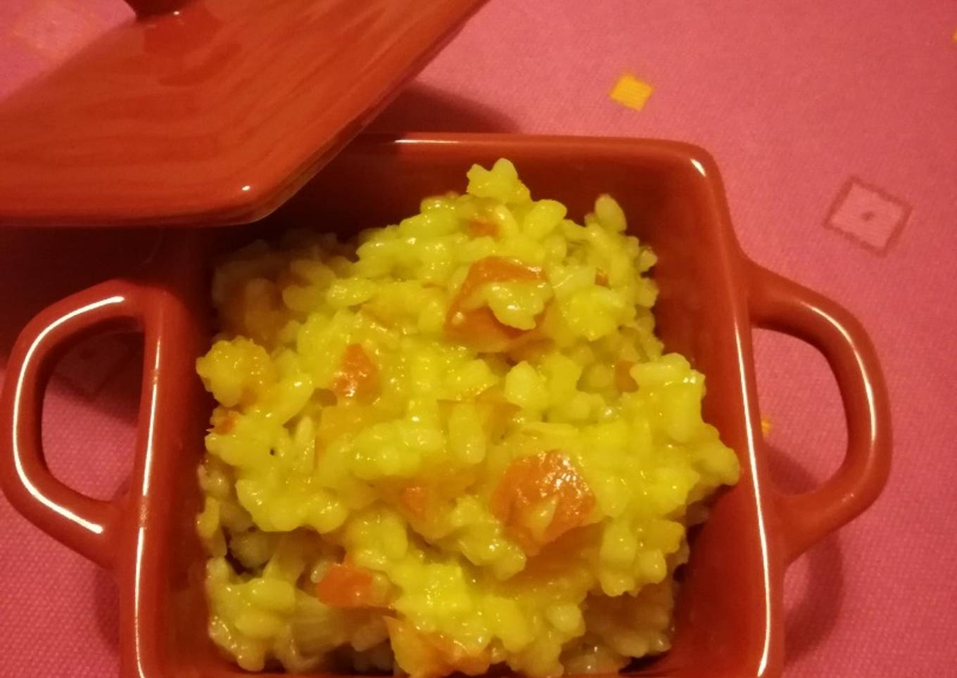 - Poner una cuchara de aceite de oliva en una cacerola sobre fuego fuerte. Añadir la cebolla y el jenjibre a dorar un poco. Añadir el arroz y la calabaza y mezclar con una cuchara de madera. Añadir el caldo y dejar cocer 15 a 18 minutos.